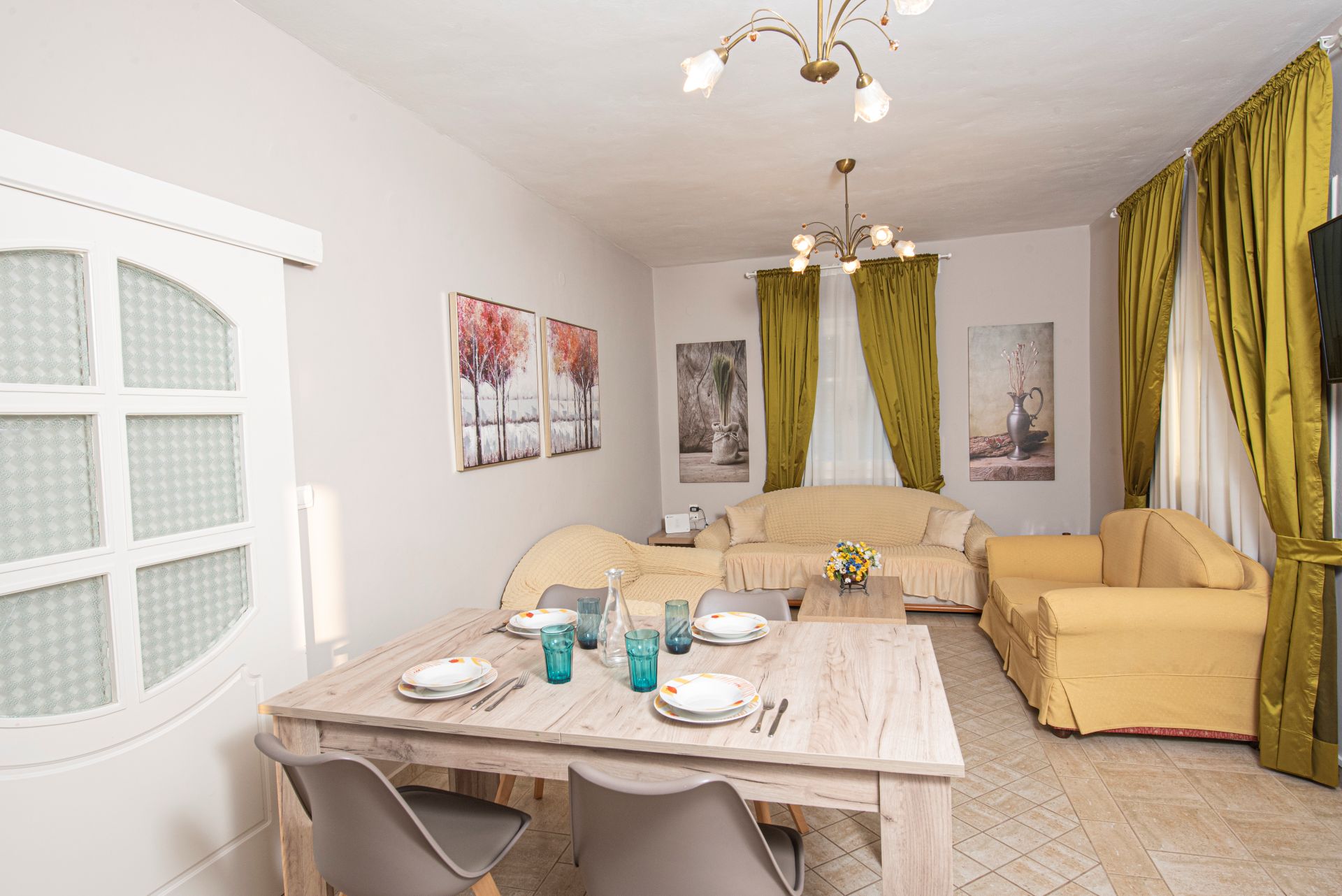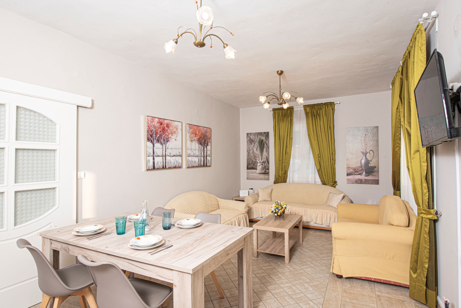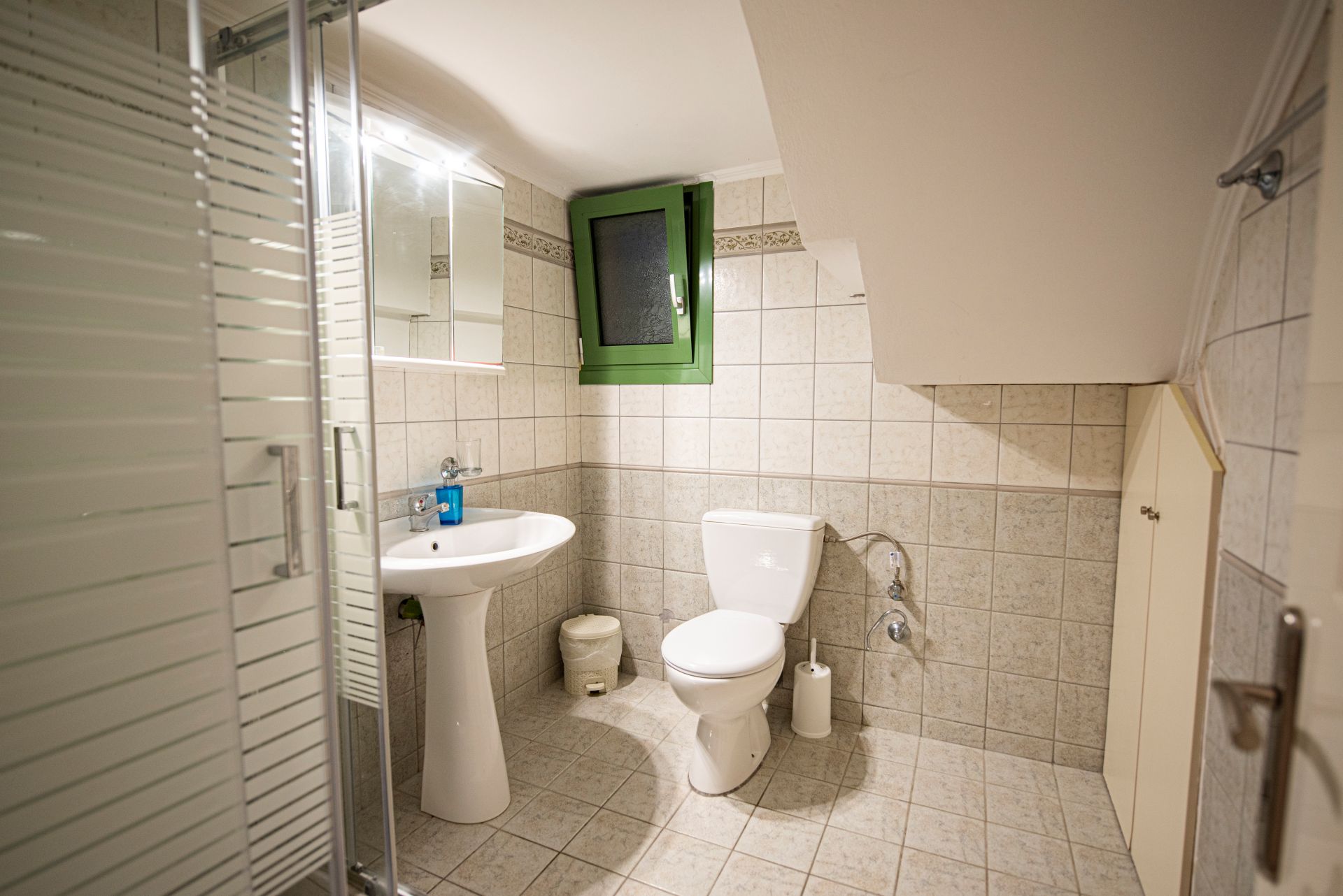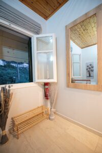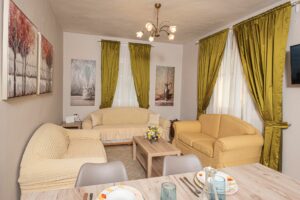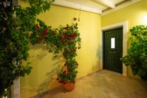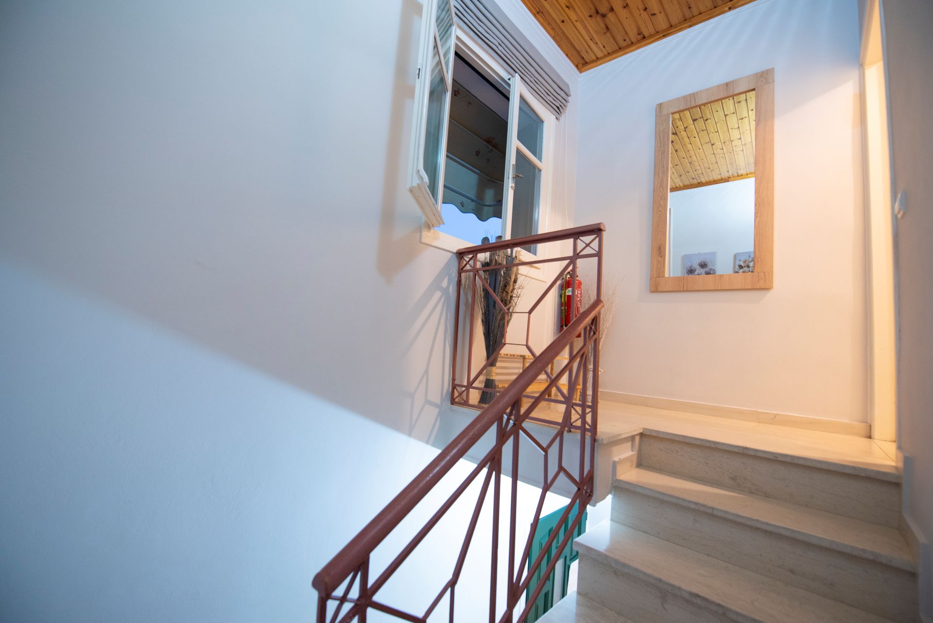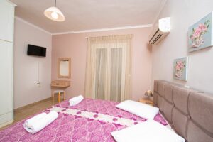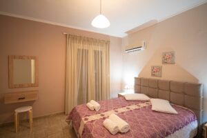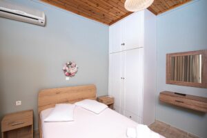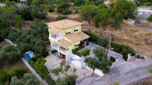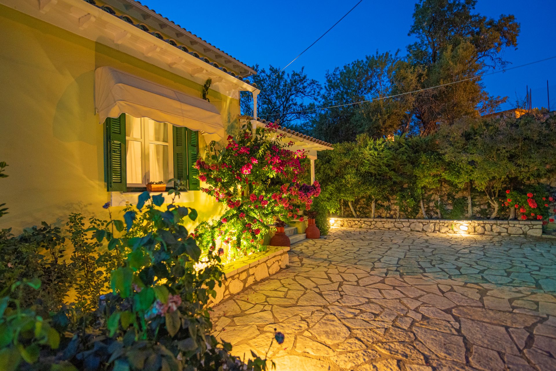 Η βίλα έχει μπαλκόνια εξοπλισμένα με τραπέζια και καρέκλες και εκπληκτική θέα στο Ιόνιο Πέλαγος. Ειδικά στο ηλιοβασίλεμα.